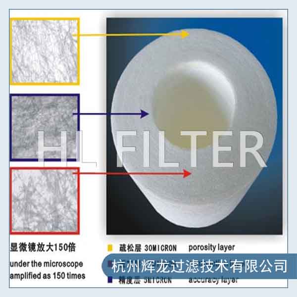 PP棉濾芯采用無毒無味的聚丙烯粒子,經過加熱熔融、噴絲、牽引、接受成形而纏繞粘結的管狀濾芯。過濾最高精度可達1μm,濾芯的結構由外向內層級過濾,越靠近濾芯里層,孔徑越小,過濾的精度也越高。PP棉具有流量大、耐腐蝕耐高壓低成本等特點,主要用于阻擋水中的鐵銹、泥沙、懸浮物等大顆粒物質。