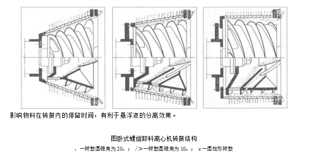 臥式螺旋卸料過濾離心機的工作原理與立式相同其轉鼓結構分為3種類型如各種類型的轉鼓都有相應的適用范圍.
