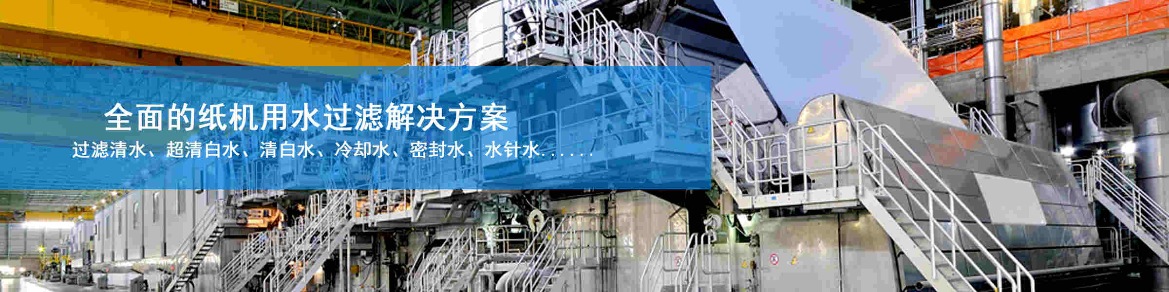 過濾各類紙機用水如原水、高低壓噴淋水、水針水、熱交換水、白水、密封水、軸承冷卻水、冷卻塔水、高低壓清洗水;過濾各類造紙涂料助劑如聚合物、碳酸鈣、膨潤土、淀粉蒸煮液、消泡劑、施膠劑、潤滑劑、抗水劑、染料、填料、顏料、乳膠等??蛻艋貓螅悍乐箛娮於氯?,回收再利用水,節能減排,控制污染雜質進入濕部,穩定并提高紙張質量。