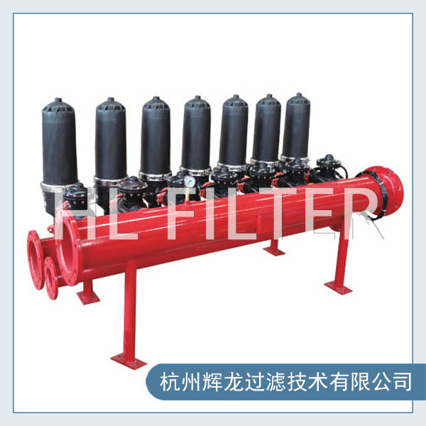 產品簡介:盤式過濾器又稱為疊片過濾器或疊片式過濾器,他是由過濾單元并列組合而成,其過濾單元主要是由一組帶溝槽或棱的環狀增強塑料濾盤構成,上下兩層盤片中間溝槽起到過濾攔截的作用。過濾時污水從外側進入,盤片在單元內為緊密壓實疊加在一起,相鄰濾盤上的溝槽棱邊形成的輪緣把水中固體物截留下來;反沖洗時水自環狀濾盤內部流向外側,將截留在濾盤上的污物沖洗下來,經排污口排出。