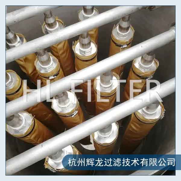 過濾器的筒體里配置1至多根濾芯,濾芯上套有根據原料液特性選擇的專用濾布(某些特殊原料液需加入助濾劑,如活性炭,硅藻土等),當液體經過濾布時,會在濾布表面逐步集聚液體中的固體物質當這些固體物質達到一定厚度時,就形成了所謂的“濾餅層”。由于濾餅層微粒之間的空隙很小,阻留了液體中顆粒雜質的逃逸,這樣就使濾液變清,達到生產所需的過濾效果。(所以燭式過濾器也被稱之為濾餅層過濾器)。